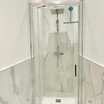 在浴室里配有步入式淋浴间 和分开的洗手间等物品.